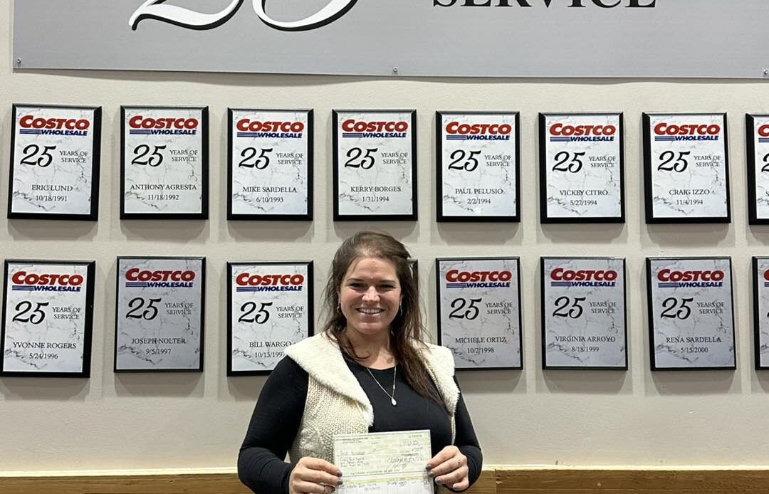 Ellie from Manahawkin Costco presented us with a large check this week to purchase needed items. Thank you Ellie!